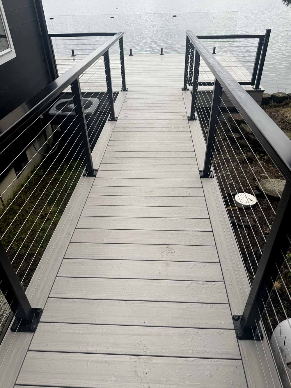 Professional installation of exterior railings on decks, docks, concrete surfaces, slopes, and challenging terrain.
